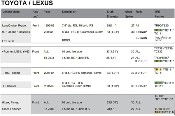 Air Locking Differential TR111 Toyota 8” IFS,53mm BRNG ,30spline, 3.91 & UP