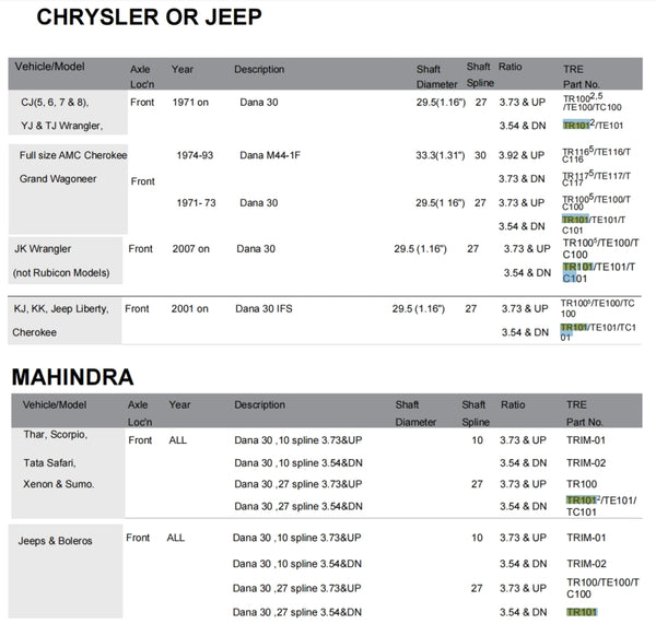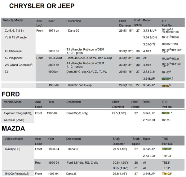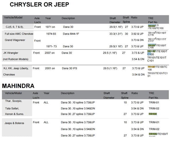Air Locking Differential TR100 Dana 30,27 SPL,3.73 & UP