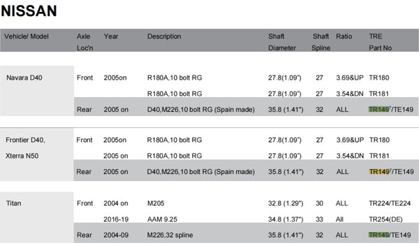 Air Locking Differential TR149 for Nissan M226,32 SPL,10 bolt RG