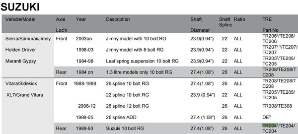 TE204 Suzuki Vitara,RR,26 SPL,10 bolt RG