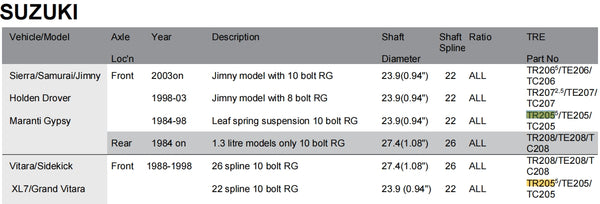 TE206 Suzuki Jimny,FR,22 SPL,10 bolt RG