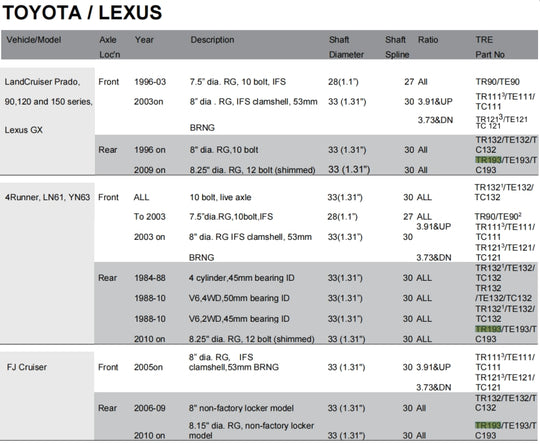 TE193 Toyota 8.25" RR,12 Bolt RG,shim adjusted,30SPL
