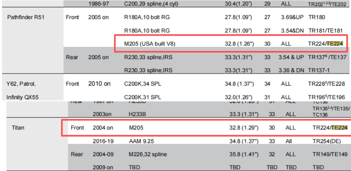 Application Chart TRE4x4 Locker Deffirential Catalog